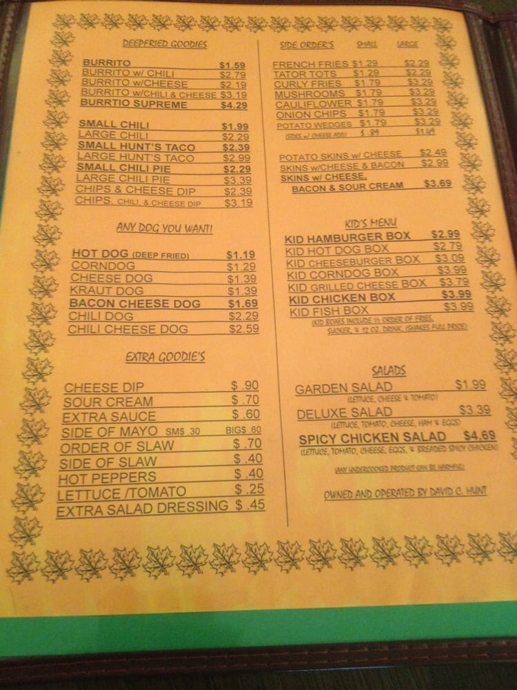 Located in Park Hills, MO, Hunt's Dairy Bar offers a delightful mix of ice cream, frozen yogurt, burgers, and American cuisine. With a range of utilities like takeout, reservations, delivery, and catering, this establishment caters to various dining preferences. The restaurant boasts a charming and casual atmosphere with outdoor seating and ample parking. Customers rave about the top-notch service and delicious food, from mouth-watering burgers to savory taco salads. The menu remains true to its traditional roots, offering classic drive-in style dishes and delectable desserts. Known for its friendly carhops, consistent quality, and nostalgic ambiance, Hunt's Dairy Bar is a must-visit spot for those seeking a taste of old-school diner experience.